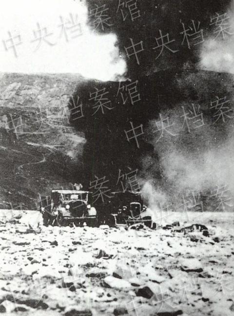 1937年10月,八路军在雁门关以南击毁的日军汽车。